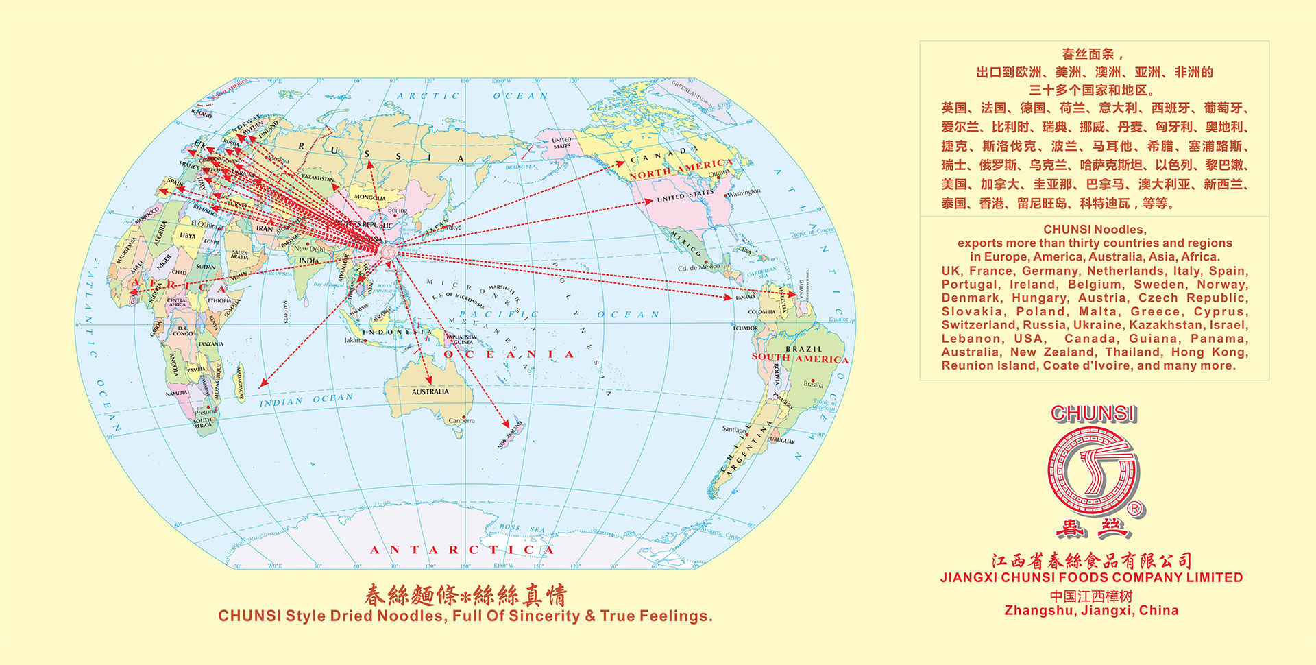 江西省春絲食品有限公司位于江西省樟樹市。 樟樹具有制作面條的悠久歷史傳統(tǒng)。古來即有民謠:“臨江府、清江縣(即樟樹),六歲伢仔會(huì)做面。” 今春絲公司是江西省內(nèi)具有規(guī)模的面條、米粉加工企業(yè),也是全國知名的面條生產(chǎn)企業(yè)。春絲公司現(xiàn)擁有“春絲”、“凌波仙子”、“絲絲福”、“春佳”四大品牌,一百多個(gè)品種。所有面條、米粉產(chǎn)品均選用合格原料,符合國家質(zhì)量和衛(wèi)生標(biāo)準(zhǔn)。產(chǎn)品具有安全健康、面體勁道、柔韌爽滑、易熟、久煮不糊、不渾湯等特色,深受廣大消費(fèi)者歡迎。春絲產(chǎn)品已全面進(jìn)入沃爾瑪、家樂福、樂購、歐尚、好又多、易初蓮花等大型超市,并遠(yuǎn)銷美國、日本、英國、德國、法國、西班牙、意大利、葡萄牙、香港等二十多個(gè)國家和地區(qū)。